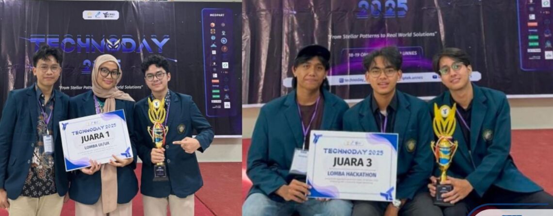 Mahasiswa Fakultas Ilmu Komputer Universitas Brawijaya (FILKOM UB) kembali mengharumkan nama almamater dengan meraih prestasi gemilang di ajang nasional Hackathon Technoday 2025 yang diselenggarakan oleh Universitas Negeri Semarang (UNNES) pada 18 Oktober 2024. Kegiatan yang berlangsung di Gedung Lembaga Pengembangan Pendidikan dan Profesi (LP3) UNNES, Kampus Sekaran, Kecamatan Gunungpati, Kota Semarang, Jawa Tengah ini mempertandingkan 92 peserta dari tingkat mahasiswa dan SMA/SMK sederajat melalui beberapa tahapan ketat mulai dari seleksi, final, hingga penentuan juara. Dua tim FILKOM UB berhasil menorehkan prestasi membanggakan. Tim pertama yang terdiri dari Naufal Afkaar (Teknik Informatika angkatan 2022), Rhea Aulia Rizqika Fitriani (Teknologi Informasi angkatan 2022), dan Moch Zoel Reinanda (Pendidikan Teknologi Informasi angkatan 2022) meraih Juara 1 Bidang UI/UX (https://www.instagram.com/p/DQd7UjYEgJm/?img_index=1). Sementara tim kedua beranggotakan Muhammad Rizqullah Almadinah (Teknologi Informasi, NIM 235150707111041), Muhammad Zhafir Aufar (Teknik Informatika, NIM 235150200111017), dan Andika Saktidana Hernadi (Teknik Informatika, NIM 235150207111029) berhasil meraih Juara 3 pada cabang Hackathon (https://www.instagram.com/p/DQd7UjYEgJm/?img_index=2).