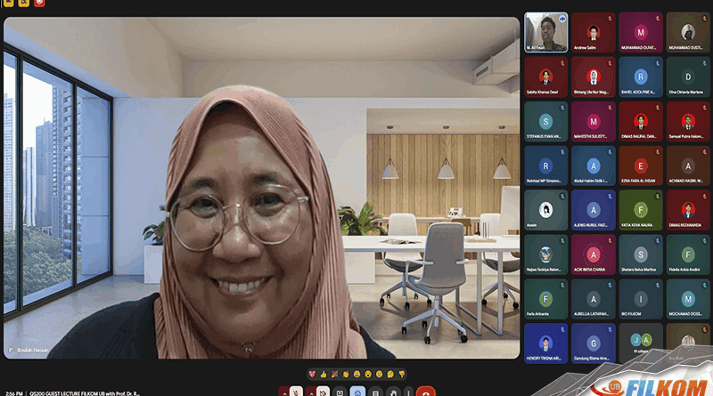 Fakultas Ilmu Komputer Universitas Brawijaya (FILKOM UB) kembali menghadirkan kegiatan akademik berbasis penguatan literasi digital melalui kuliah tamu bersama Prof. Dr. Rosilah Hassan dari Faculty of Information Science and Technology (FTSM), Universiti Kebangsaan Malaysia (UKM). Kegiatan ini dilaksanakan secara daring pada Kamis dan Jumat (20–21/11/2025), sebagai bagian dari upaya memperluas wawasan mahasiswa dan meningkatkan kesiapsiagaan dalam menghadapi tantangan dunia digital.