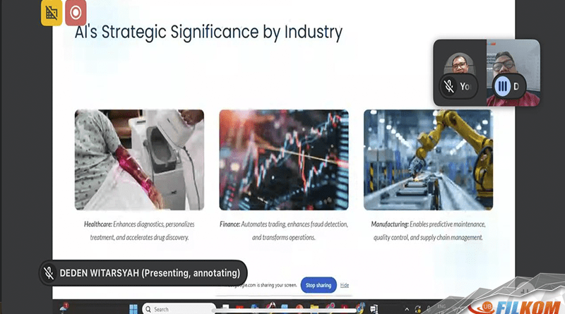 Kegiatan Adjunct Professor ini diwujudkan dalam bentuk dua kali pertemuan online (daring) perkuliahan Mata Kuliah Tata Kelola Teknologi Informasi, yang diikuti oleh mahasiswa dengan antusias tinggi. Kehadiran Prof. Deden tidak hanya memperkaya perspektif internasional dalam pembelajaran, tetapi juga memperkuat pemahaman mahasiswa mengenai tantangan dan peluang tata kelola teknologi informasi di era kecerdasan artifisial (Artificial Intelligence/AI). Dalam perkuliahannya, Prof. Deden membahas secara komprehensif perkembangan AI modern, mulai dari Artificial Narrow Intelligence (ANI) hingga arah menuju Artificial General Intelligence (AGI), serta implikasinya terhadap organisasi dan masyarakat. Materi juga menyoroti pentingnya AI Governance yang bertanggung jawab, mencakup aspek etika, transparansi, akuntabilitas, keamanan data, serta mitigasi risiko bias algoritmik.