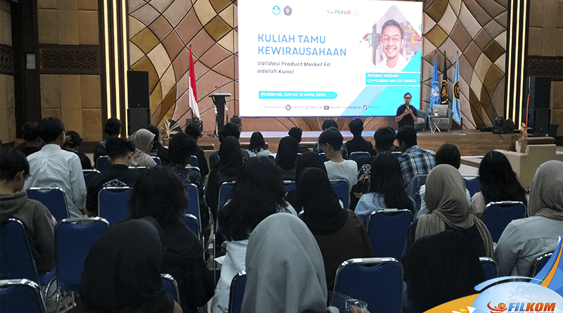 Berkaitan dengan hal tersebut, Fakultas Ilmu Komputer, Universitas Brawijaya (FILKOM UB), berupaya terus memupuk semangat kewirausahaan dan membekali mahasiswa dengan wawasan praktis dunia industri digital. Bertempat di Auditorium Algoritma, FILKOM UB, digelar kuliah tamu kewirausahaan pada Jumat (10/04/2026). Acara ini dilaksanakan secara hybrid, menghadirkan mahasiswa secara luring di auditorium dan juga daring melalui platform GMeet, guna menjangkau partisipasi yang lebih luas. Hadir sebagai narasumber utama adalah Rachmat Anggara, Co-Founder sekaligus CEO Qasir.id.