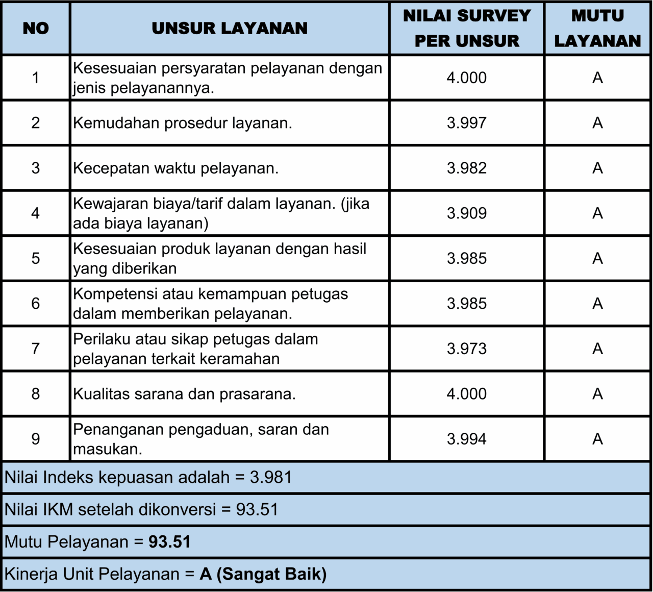 Berdasarkan hasil analisis, FILKOM memperoleh nilai 93,51 dengan kategori sangat baik. Seluruh unsur layanan mendapatkan penilaian dengan kategori sangat baik. Unsur layanan dengan nilai tertinggi adalah kesesuain persyaratan pelayanan dengan jenis pelayanannya dan kualitas sarana dan prasarana layanan, sedangkan unsur yang perlu menjadi perhatian untuk peningkatan ke depan adalah kecepatan waktu layanan.