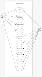 1. Siswa → Mengakses materi, mengunduh materi, mengumpulkan tugas, mengikuti ujian quiz, mengikuti forum, dan menerima penilaian.