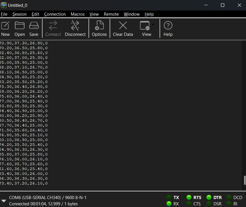 Berikut adalah gambar contoh pengambilan data pada coolterm.
