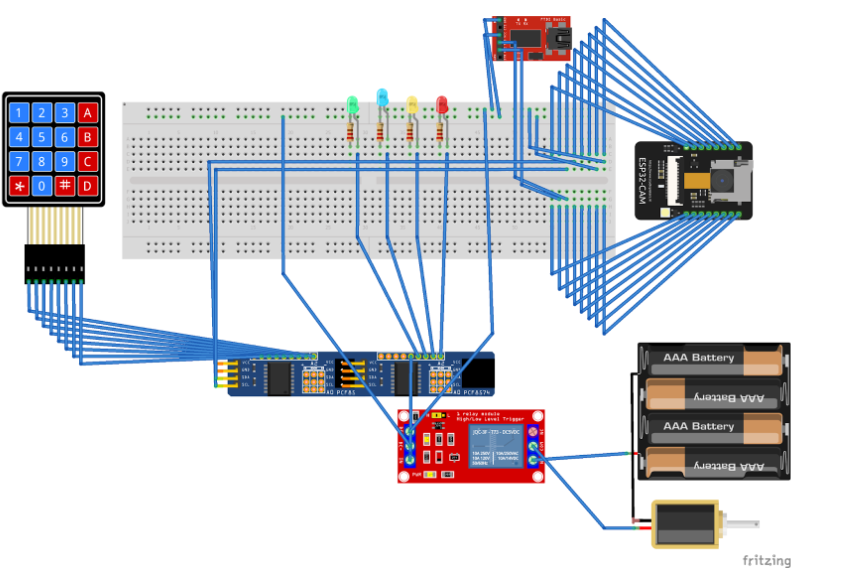 📸 Menggunakan modul kamera (ESP32-CAM) untuk mengambil gambar wajah secara real-time saat seseorang mendekati pintu.
