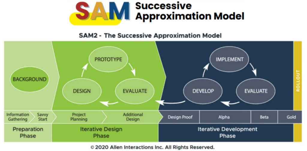 Pengembangan media ajar dalam proyek ini menggunakan metode SAM (Successive Approximation Model). SAM merupakan pendekatan iteratif dan fleksibel yang cocok untuk pengembangan produk berbasis digital, termasuk media ajar interaktif. Metode ini terdiri dari tiga fase utama, yaitu Preparation Phase, Iterative Design Phase, dan Iterative Development Phase (Allen, 2012).