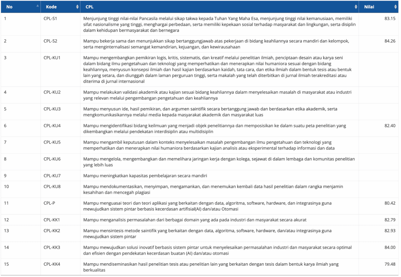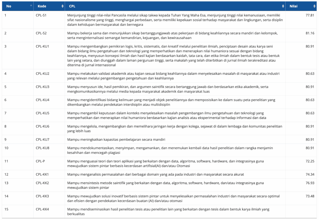 Pencapaian Standar Kompetensi Lulusan Program Studi Magister Ilmu Komputer